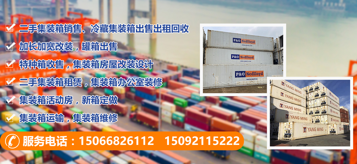 主營;二手集裝箱銷售、冷藏集裝箱出售出租回收、加長加寬改裝,罐箱出售,特種箱收售,集裝箱房屋改裝設計,二手集裝箱租賃,集裝箱辦公室裝修,集裝箱活動房,新箱定做,集裝箱運輸,集裝箱維修等業務